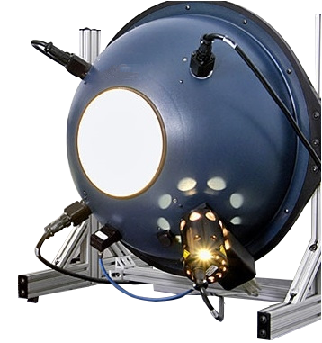 均勻光源系統(tǒng)的光源采用20秒爬升時間來增加使用壽命,相互匹配的燈泡色溫可以減少多個燈泡組合時產(chǎn)生的色溫變化,結(jié)實可靠的開口結(jié)構(gòu)使得待測樣品安裝簡單且可重復(fù)。系統(tǒng)包含所有的電器設(shè)備,相關(guān)設(shè)備安裝在球的框架上以便于移動。