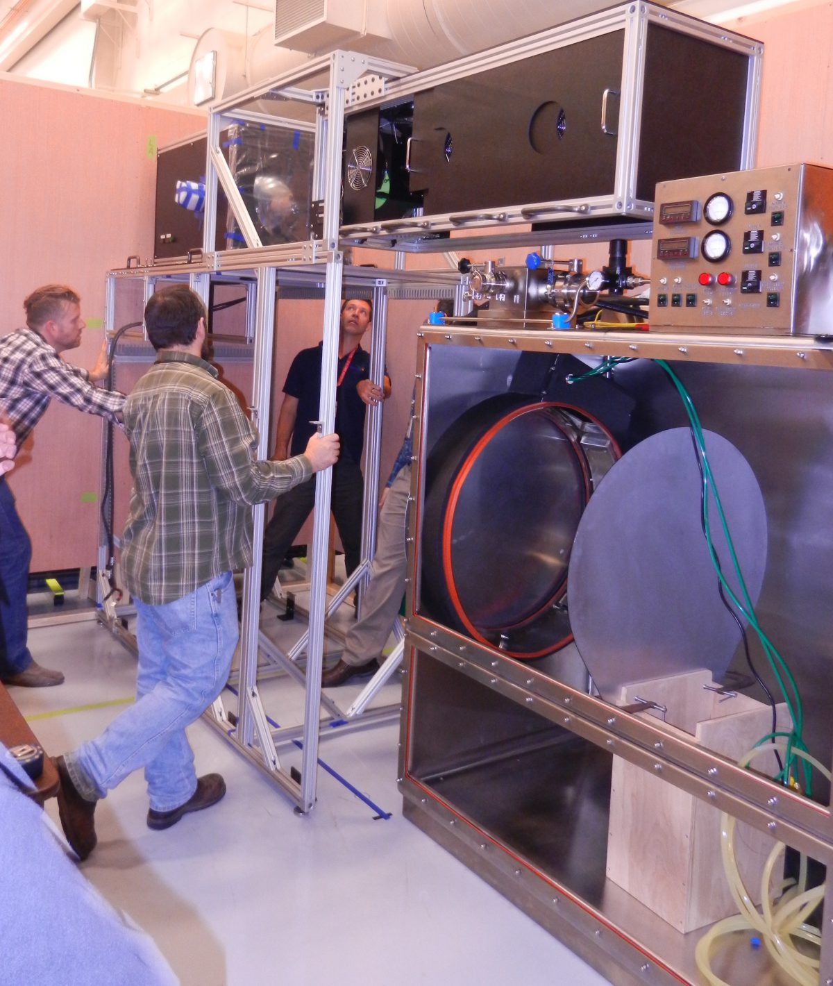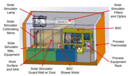 科學(xué)家聯(lián)系了我們,需要開發(fā)定制的太陽(yáng)能模擬器,以實(shí)現(xiàn)政府的高度優(yōu)先研究計(jì)劃。他們對(duì)研究高層大氣中的空氣污染效應(yīng)和光化學(xué)具有獨(dú)特而特殊的光譜要求??蛻舻臉悠肥沂且粋€(gè)裝有懸浮氣溶膠的旋轉(zhuǎn)圓柱鼓,需要均勻和準(zhǔn)直的照明。但是,狹窄的實(shí)驗(yàn)室空間以及連接到樣品桶的其他設(shè)備的存在對(duì)我們提出的解決方案施加了多個(gè)限制。